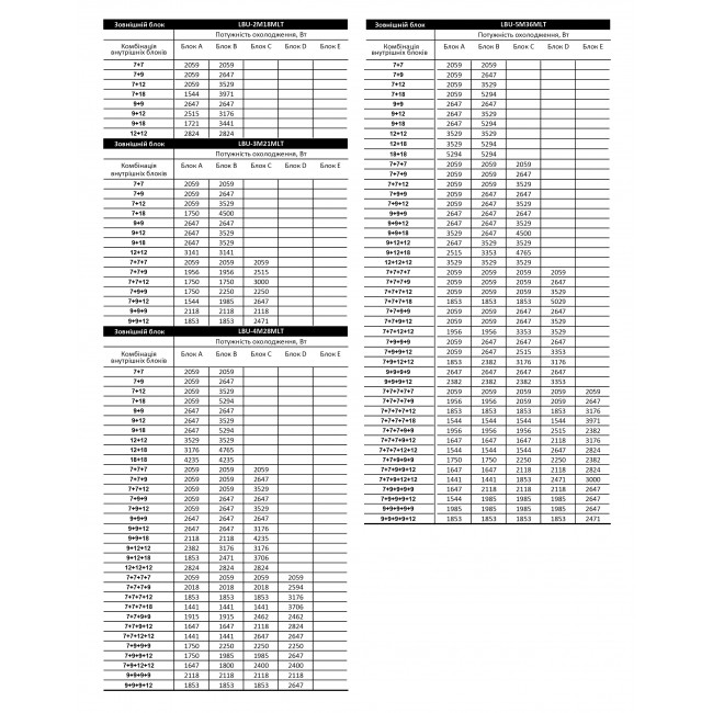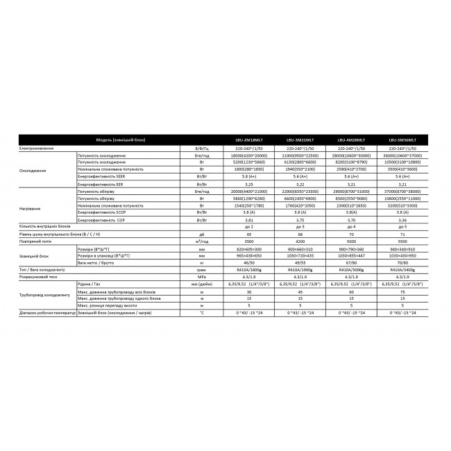 Характеристики LBS-12TORm - Мульти-сплит-система Leberg